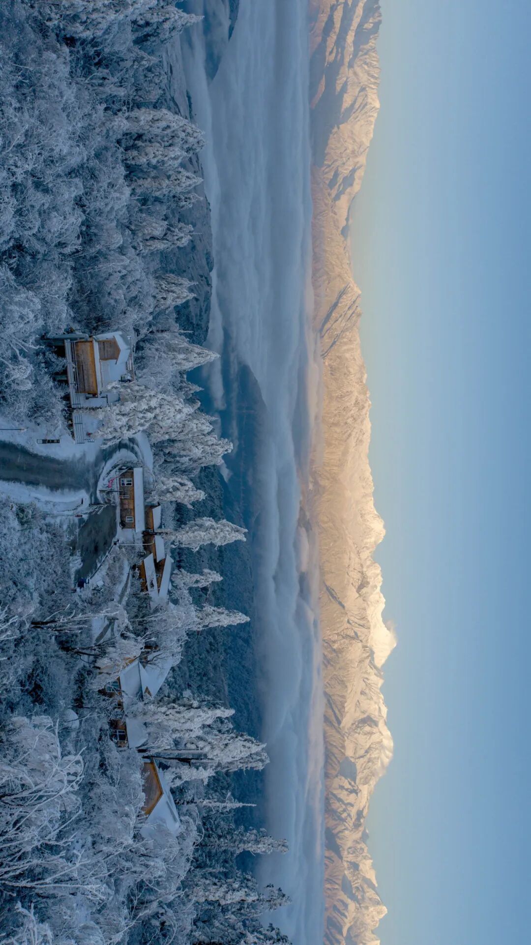 随着气温降低,雪粒给枝头披上薄纱,云海在雪山与雾凇之间流转,编织出冬日的极致浪漫。