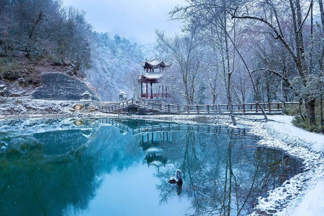 冬季的雅安,从城区到高山,从茶山到森林,处处被皑皑白雪装点得如诗如画。